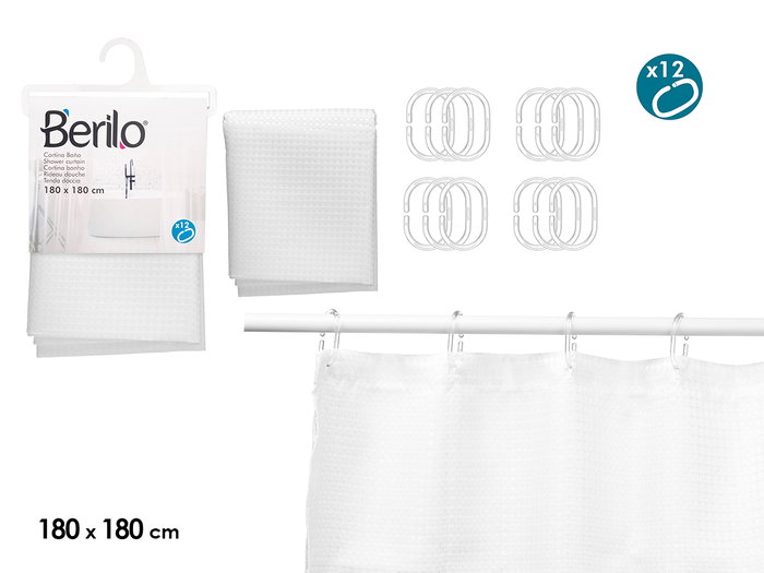 CORTINA BAÑO POLIESTER BLANCO PUNTOS 180X180CM