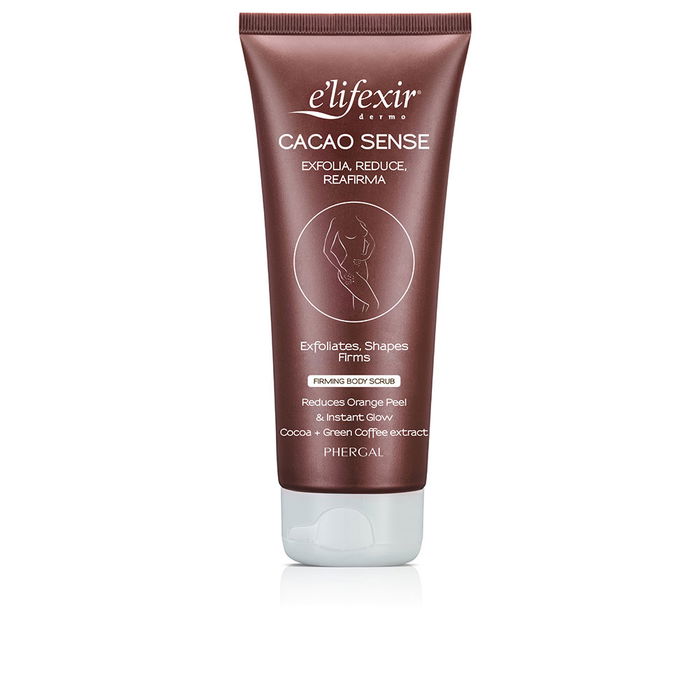 El E'Lifexir CACAO SENSE se posiciona como el primer exfoliante corporal reductor y reafirmante, con una textura fundente y suave que purifica tu piel, potencia la acción reductora y mejora notablemente su luminosidad y suavidad.