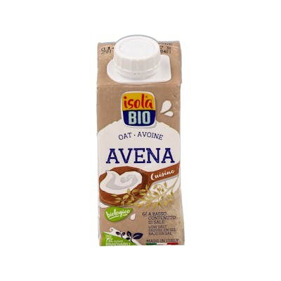 Composicion: Agua, avena italiana* (20%), aceite de girasol prensado en frío*, almidón de tapioca*, espesante: goma garrofín*, emulsionante: lecitina de girasol*, sal marina. Valor nutricional por 100 ml: Energía 586 kJ/ 141 kcal Grasas 10 g de las cuales saturadas 1 g Hidratos de carbono 11 g de los cuales azúcar 3 g Fibra alimentaria 1,5 g Proteínas 1 g Sal 0,16 g (*)= De cultivo ecológico.