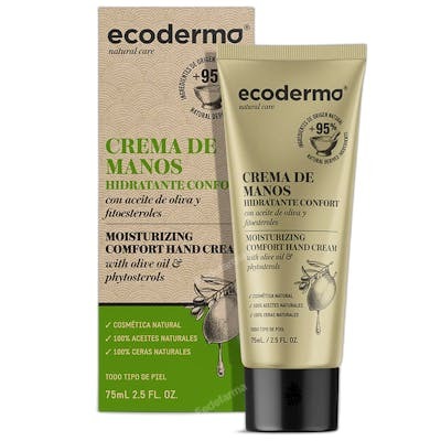 Ecoderma Crema de Manos Hidratante Confort Reparadora Protectora con Aceite de Oliva y Bioceramidas Sin Parabenos para Todo Tipo de Pieles 75 ml