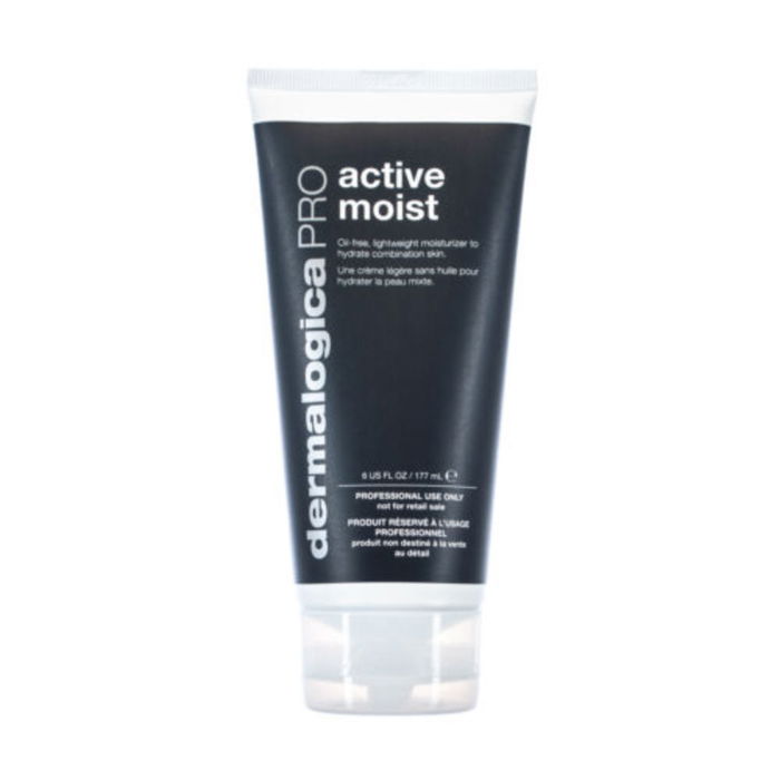 Tratamiento Facial Hidratante GREYLINE active moist de DERMALOGICA. Crema hidratante ligera y libre de grasa, de absorción rápida, que crea una barrera invisible para prevenir la pérdida de hidratación. Formulada con Proteínas de Seda y extractos naturales de Bardana, Salvia y Pepino, que calman y nutren la piel en profundidad.