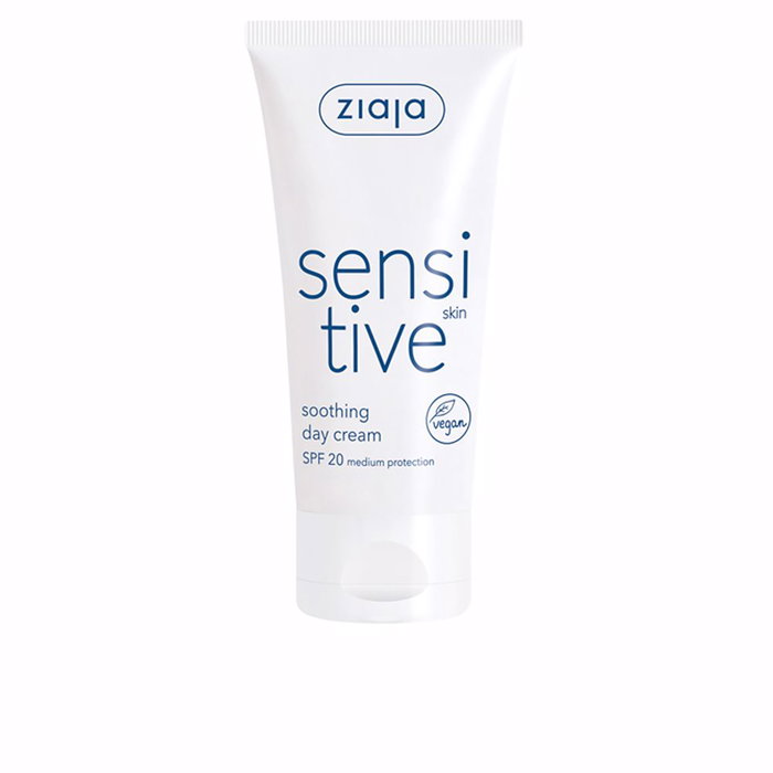 Ziaja SENSITIVE Crema de Día Calmante para Pieles Sensibles y Secas SPF20, Hidratante, Alivia Picores, 50 ml, Vegana, Sin Fragancia