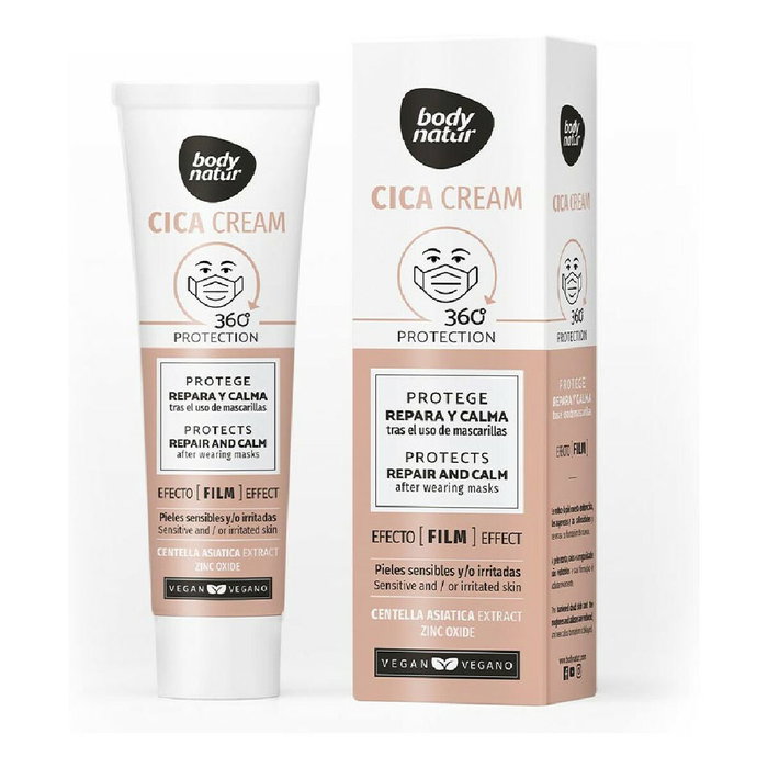 CICA CREAM protege repara y calma tras el uso de mascarilla, Tratamiento Facial HidratanteDescubre el innovador tratamiento de reparación para toda la familia: CICA CREAM protege repara y calma tras el uso de mascarilla de BODY NATURE. Esta crema reparadora, enriquecida con extracto de Centella asiática, está diseñada para proteger y restaurar la epidermis, aliviando los efectos adversos que pueden surgir por el uso de mascarillas.