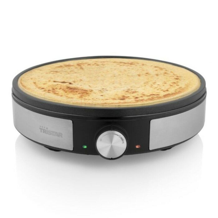¿Le encantan los crepes, pero solo los come en fechas muy señaladas o cuando va de vacaciones? ¡Con la crepera Tristar BP-2638, ya puede hacerlos en su propia casa! La crepera también es perfecta para hornear panqueques. ¡Gracias a su diámetro de 30 cm, puede cocinar crepes y panqueques sabrosos y extragrandes para toda la familia! Los crepes más sabrosos ¡La crepera Tristar le garantiza que pueda hornear los crepes o panqueques más sabrosos sin problemas! Puede cocinarlos aunque esté en la mesa para que todo el mundo pueda disfrutar de sus panqueques o sus crepes calientes y al mismo tiempo. Claro que también es posible usar la bandeja para cocinar una deliciosa tortilla, por ejemplo. Diseño práctico La crepera BP-2638 está equipada con una bandeja para hornear hecha de aluminio fundido, con un diámetro de 30 centímetros. Este resistente material también está provisto de un revestimiento antiadherente para que no tenga que preocuparse de que se quemen sus panqueques. Gracias a las patas antideslizantes, la crepera permanece firme y estable sobre la mesa durante la cocción. Después de su uso, puede guardar fácilmente el aparato gracias a su tamaño compacto y su compartimento para cables. Fácil de usar Con la crepera Tristar recibirá una espátula y un esparcidor para que pueda hornear fácilmente unos sabrosos crepes. Puede ajustar la temperatura fácilmente con el termostato y, gracias a las luces indicadoras, saber de un vistazo si ya se ha alcanzado la temperatura adecuada. Gracias a su capacidad de 1200W, la crepera estará lista para su uso, a la temperatura correcta, rápidamente. Qué hay en la caja: Crepera Tristar, espátula, esparcidor y manual.
