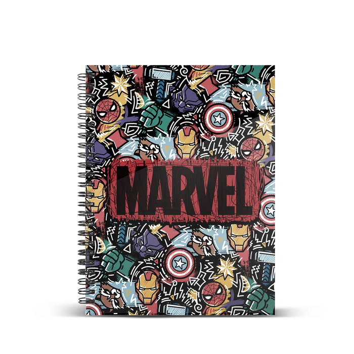 Bloc de notas de tapa dura encuadernado con espiral. Contiene 120 hojas interiores con cuadrícula de 5mm.