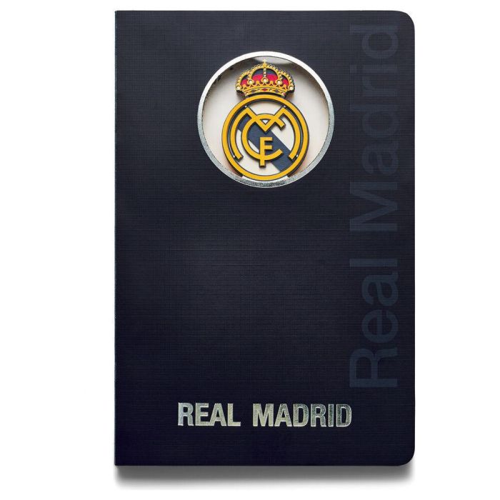 Real Madrid Cuaderno A5 con Escudo en 3D Azul Oficial 120 Hojas Sin Pautar
