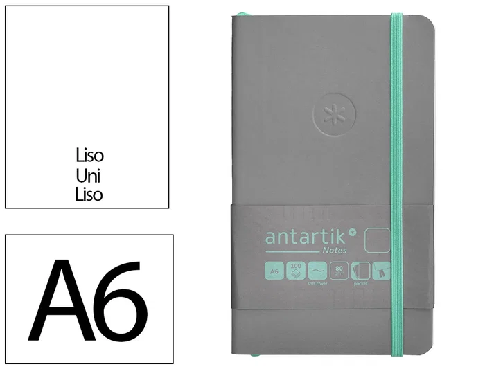Sumérgete en el estilo de moda y práctico de la colección Antartik Notes. Este cuaderno tiene un diseño elegante con la estrella genial de Antartik impresa en relieve, dándole un toque de diseño único. Cubierto en simil piel, proporciona un tacto ultra suave. Cuenta con un cierre elástico con gomilla, 2 marcapáginas para organizar y acceder fácilmente a distintas secciones. Además, ofrece un bolsillo tipo sobre, ideal para guardar tarjetas o pequeñas notas. Antartik Notes tiene hojas de papel de alta calidad de 80 gramos y certificación FSC, ofreciendo una superficie óptima para escribir, dibujar o plasmar tus ideas creativas. La clave está en la versatilidad de su uso: desde el día a día, en el trabajo, hasta la captura de ideas,as, proyectos o creación de bocetos creativos. CARACTERÍSTICAS: Tamaño A6 TAPA BLANDA HOJAS LISAS 100 HOJAS COLOR GRIS Y TURQUESA 80 GR FSC ¡Descubre la gama completa de colores en Antartik Notes y encuentra el cuade adapte a tu estilo!