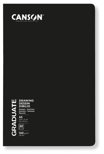 Cuaderno De Dibujo Canson Graduate Dessin Grapado Grano Suave Tapa Blanda A5 140G 20H (Set de 5)