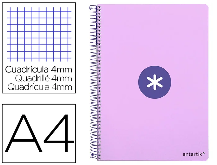 Antartik Cuaderno espiral A4 tapa dura 80 hojas 90gr cuadro 4mm con margen color lavanda