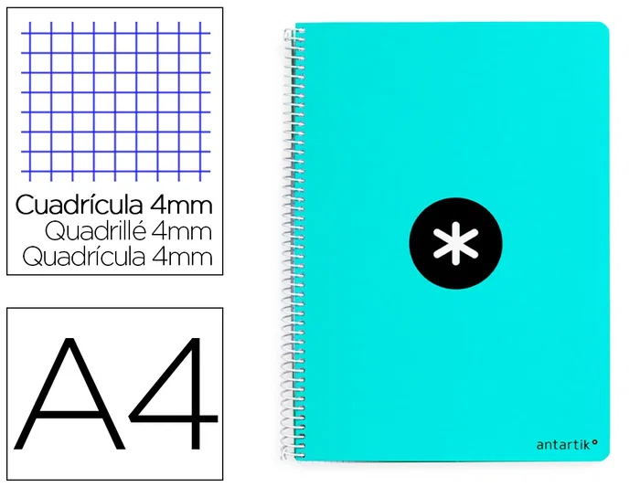 Antartik Cuaderno Espiral A4 Tapa Dura 80 Hojas 90gr Cuadro 4mm Margen Color Menta