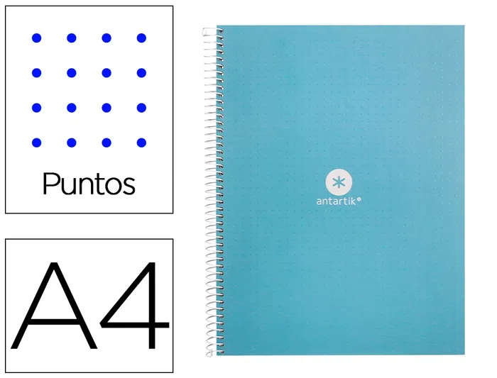 EL CUADERNO DE MÁS ALTA GAMA DEL MERCADO: EXCLUSIVO DISEÑO, CARACTERÍSTICAS INIGUALABLES, UN CUADERNO SIN PRECEDENTES QUE SE DISTINGUE POR LA SUAVIDAD Y BLANCURA DE SU PAPEL. TAPA DE CARTÓN ENTRECOLADO DE 1,5 MM DE ESPESOR, FORRADO A UNA CARA CON PAPEL ESTUCADO MATE EXTRASUAVE Y RESERVA DE BARNIZ UVI. GUARDA INTERIOR IMPRESA. 80 HOJAS DE GRAN RESISTENCIA Y RIGIDEZ. PAPEL EXTRABLANCO DE 90 G/M2, ULTRASUAVE QUE HACE LA ESCRITURA MUCHO MÁS FLUIDA. LA TINTA NO TRASPASA. BANDA DE COLOR. FORMATO DIN A4. MICROPERFORADO.ESPIRAL NYLONIZADA DE COLORES. COIL-LOCK. COLOR CELESTE. INTERIOR IMPRESOEN SUAVES PUNTOS GRISES EQUIDISTANTES 5MM ENTRE SI QUE PERMITEN SER UNA PERFECTA GUIA SIN DESTACAR. IDEAL PARA HACER BOCETOS, DIBUJAR, TOMAR APUNTES O HACER GRAFICOS.