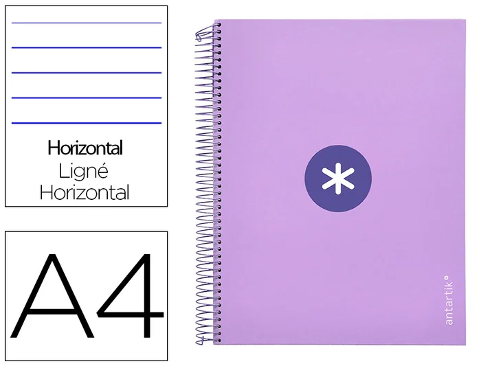 Antartik Cuaderno Espiral Micro A4 Forrada 120 Hojas 90gr Horizontal 5 Bandas Lavanda