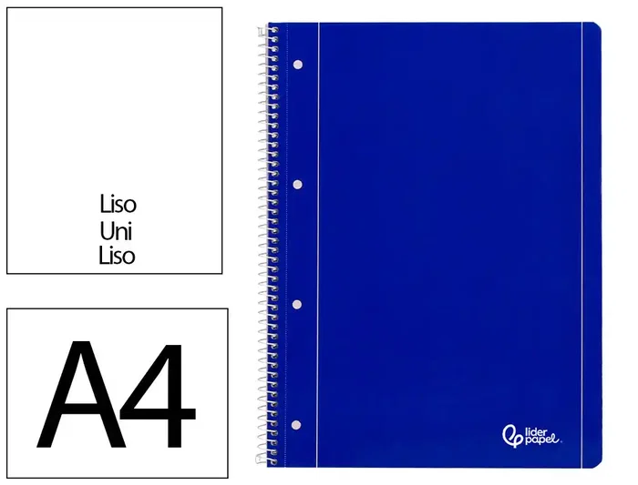 Tapa de cartón compacto de 700 g/m², barnizado a una cara en brillo. 80 hojas. Papel de 60 g/m². Espiral nylonizada negra. Con margen. Coil-lock.