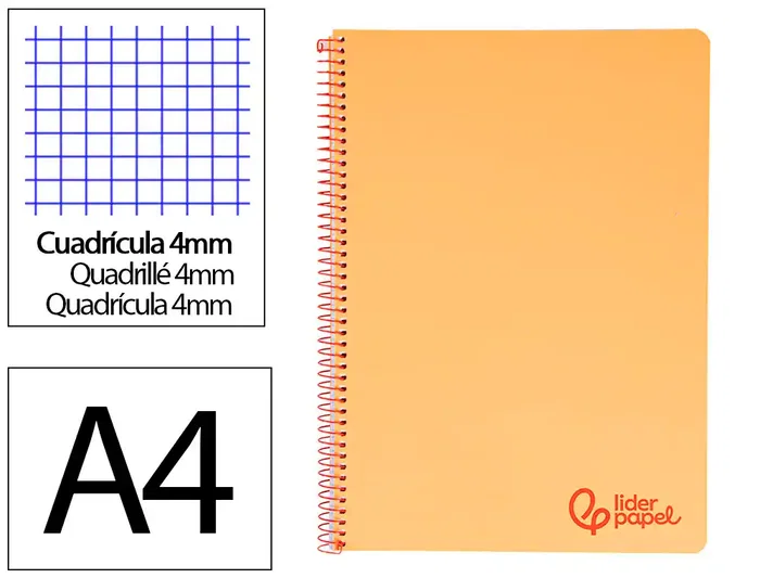 Liderpapel Cuaderno Espiral A4 Wonder Tapa Plástico 80 Hojas 90gr Cuadro 4mm Margen Naranja