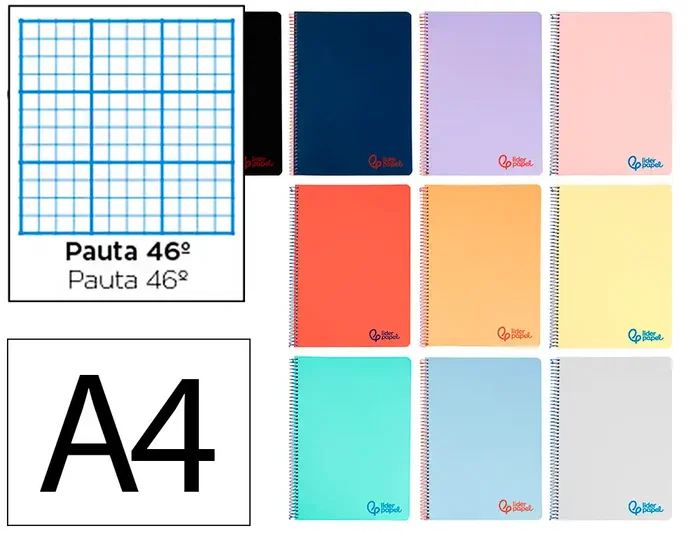 Liderpapel Cuaderno espiral Wonder A4 tapa plástico 80 hojas 90gr rayado nº46 colores surtidos