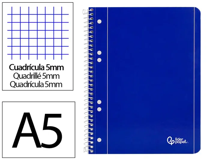 Liderpapel Cuaderno Espiral A5 Micro Serie Azul Tapa Blanda 80 Hojas 75gr Cuadro 5mm Azul