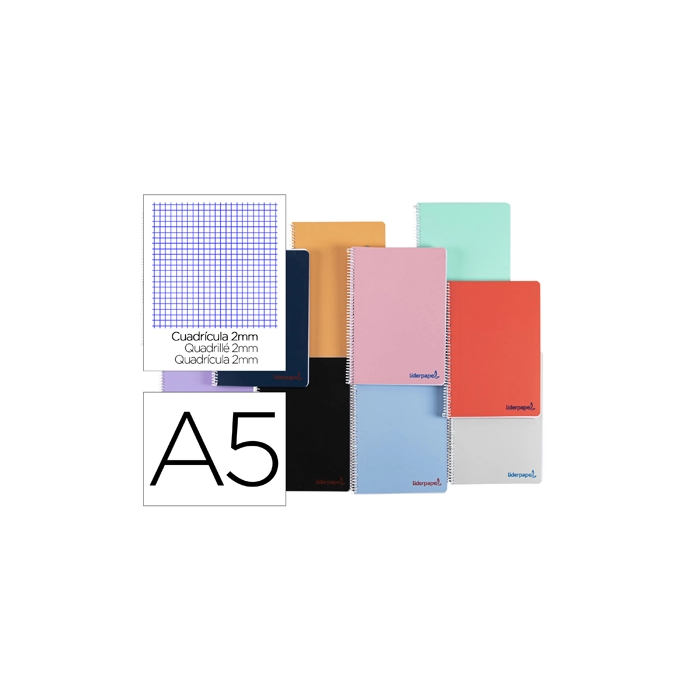 Liderpapel Cuaderno espiral wonder A5, tapa plástico, 80 hojas, 90g, milimetrado, colores surtidos