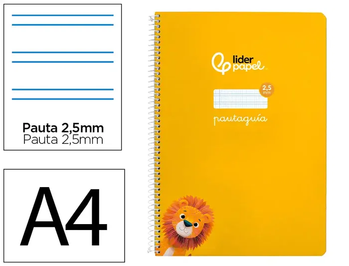 El cuaderno espiral Liderpapel Pautaguía de tamaño Din A4 es una herramienta esencial para la iniciación a la escritura. Tapa y contratapa de cartoncillo plastificada brillo. Contiene 80 hojas de papel de 75 gramos. Las hojas están diseñadas con un cuadro pautado de 2,5 mm y márgenes, proporcionando una guía clara y estructurada que ayuda a alinear sus letras y mejorar su caligrafía. Este cuaderno es perfecto para los primeros pasos en la escritura.