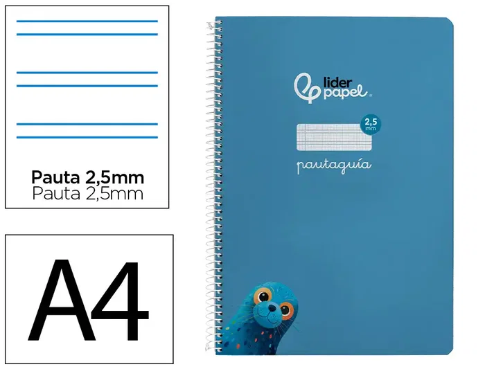 Liderpapel Cuaderno espiral A4 Pautaguía tapa blanda 80 hojas 75gr cuadro pautado 2,5mm color azul