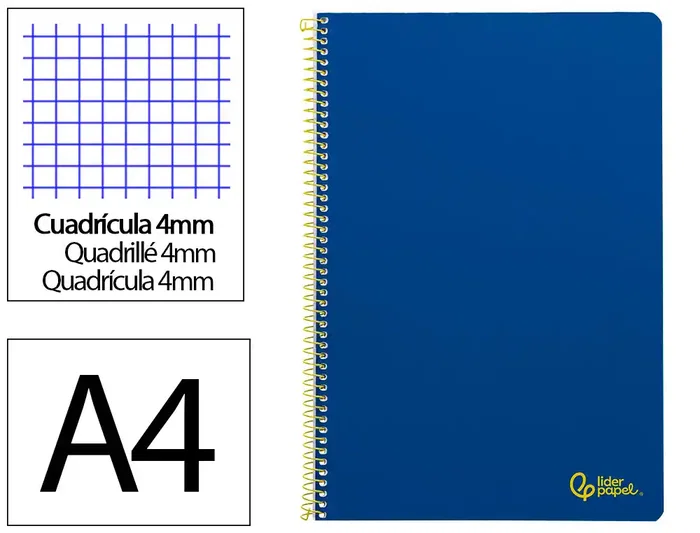 Liderpapel Cuaderno espiral Smart A4 tapa blanda 80 hojas 75gr cuadro 4mm con margen color azul oscuro