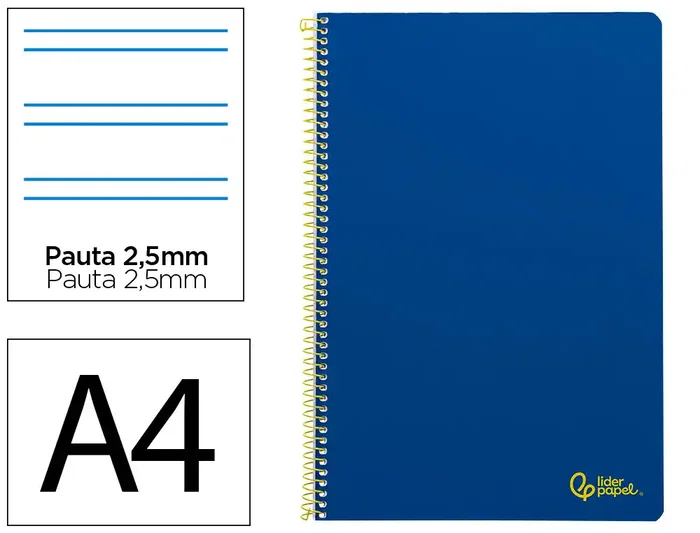 Liderpapel Cuaderno Espiral A4 Smart Tapa Blanda 80 Hojas 75gr Pauta 2,5mm Con Margen Color Azul Oscuro