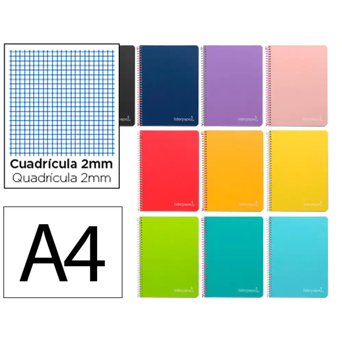 Liderpapel Cuaderno Espiral Witty A4 Tapa Dura 80 Hojas 90gr Milimetrado 2mm Colores Surtidos
