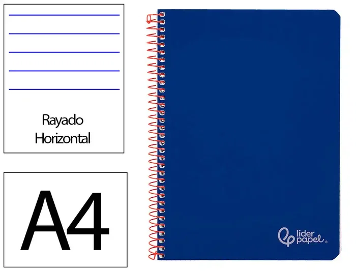 Liderpapel Cuaderno Espiral A4 Witty Tapa Dura 80 Hojas 90gr Rayado Horizontal con Margen Color Azul Oscuro