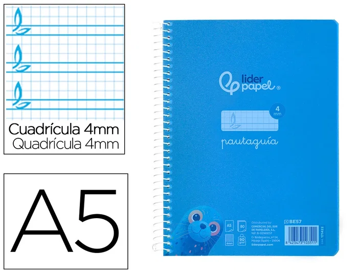 El cuaderno espiral Liderpapel Pautaguía de tamaño Din A5 es una herramienta esencial para la iniciación a la escritura. Tapa y contratapa de tapa de plástico resistente y gama de colores atractiva. Contiene 80 hojas de papel de 90 gramos. Las hojas están diseñadas con un cuadro pautado de 4 mm y márgenes, proporcionando una guía clara y estructurada que ayuda a alinear sus letras y mejorar su caligrafía. Este cuaderno es perfecto para los primeros pasos en la escritura y mayor duración, dada la rigidez de la tapa dura.