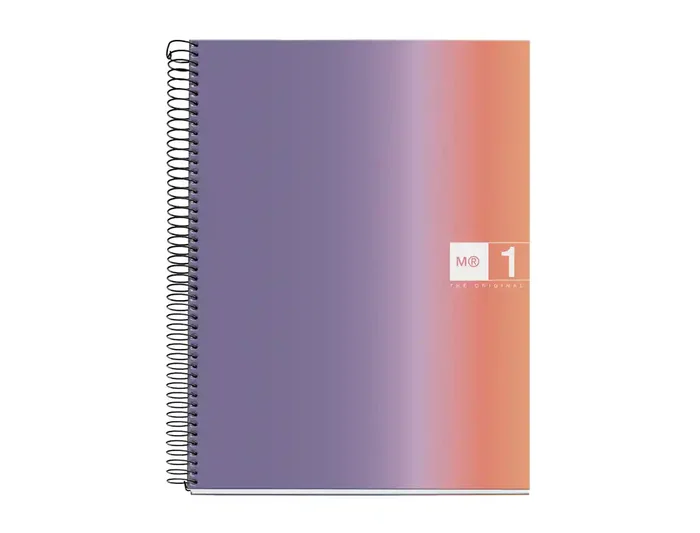 Cuaderno espiral Miquelrius Din A4 con 80 hojas de 90 g. Gama Aurora. Cubierta con cartón rígido plastificado. Interior con cuadrícula de 5x5 mm.