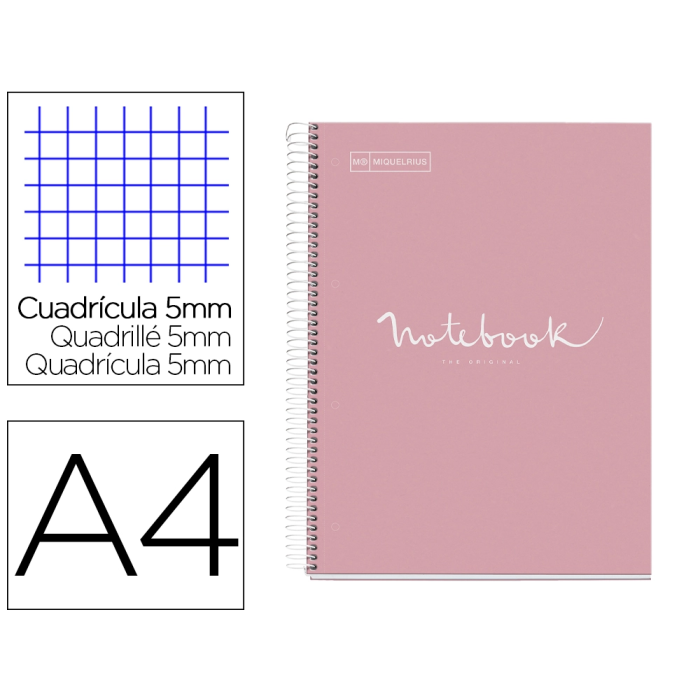 Miquelrius Cuaderno Espiral Notebook Emotions DIN A4 Microperforado 80 Hojas 90g/m2 Cuadro 5 mm