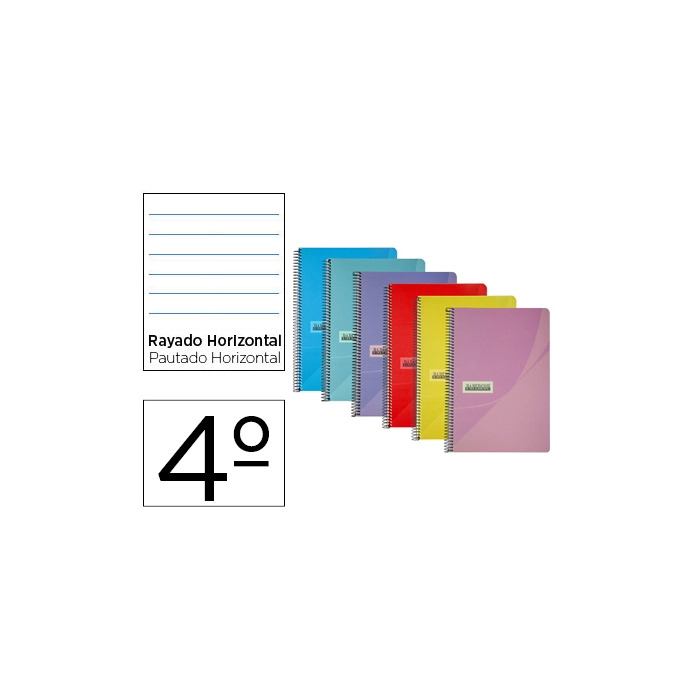 Papercop Cuaderno Espiral Cuarto Tapa Plástico 80 Hojas 90gr Rayado Horizontal Colores Surtidos