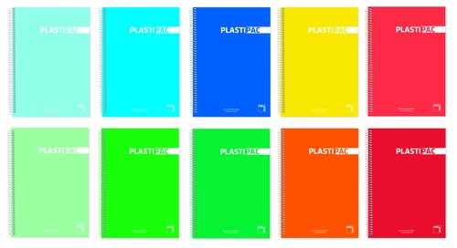 Bloc con tapa de polipropileno translúcido y contracubierta de polipropileno opaco, en tamaño A7. En su interior cuenta con 80 hojas de papel extra blanco de 90 gramos encuadernadas con una espiral de alambre blanco nylonizado con coil-lock.