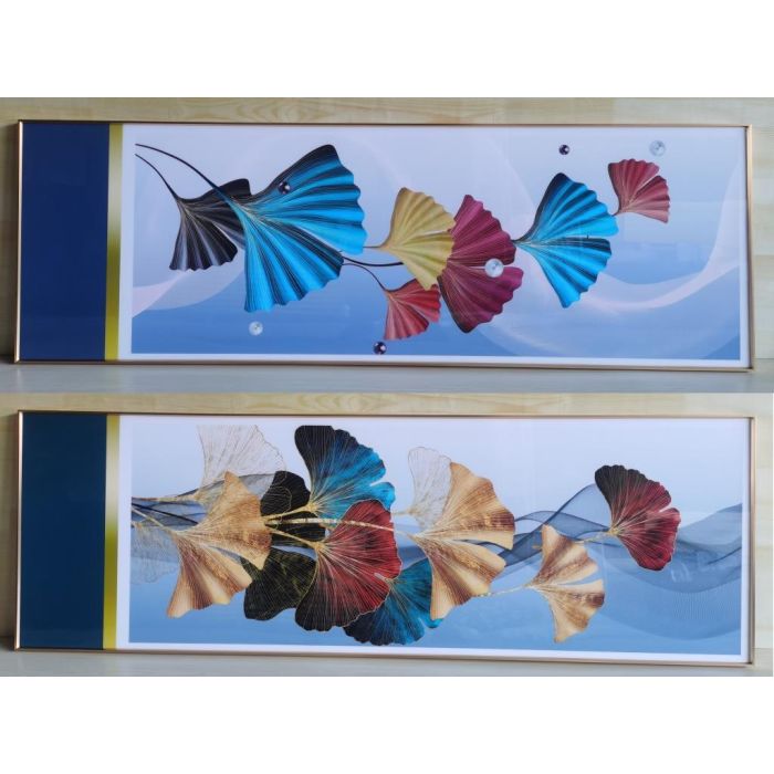 DKD Home Decor Cuadro Moderno Hojas Multicolor Dorado Aluminio MDF 2 Unidades 3 x 60 x 180 cm