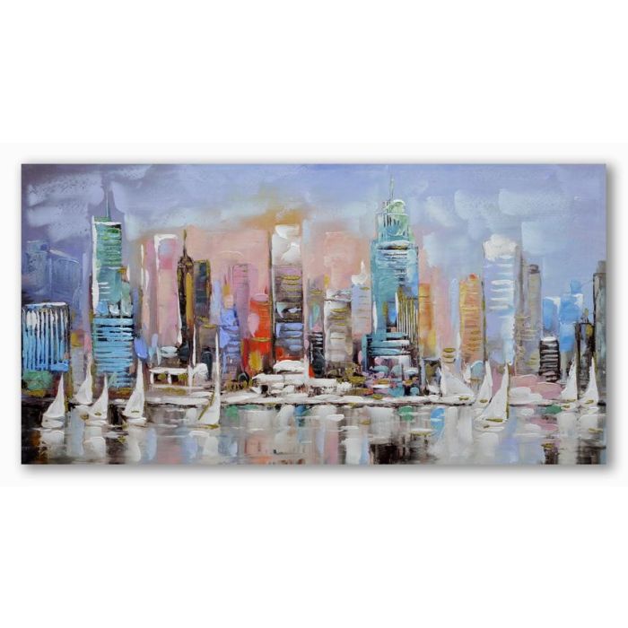 DKD Home Decor Cuadro Decorativo Loft Diseño Ciudad Hecho a mano Multicolor Lienzo y MDF 120x60 cm - Juego de 2 Unidades