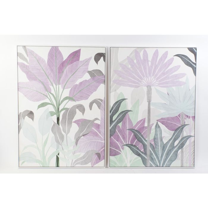 DKD Home Decor Cuadro Decorativo Tropical Verde Malva Lila para Pared de PS y Lienzo de 144 x 103.5 cm (Pack de 2 Unidades)