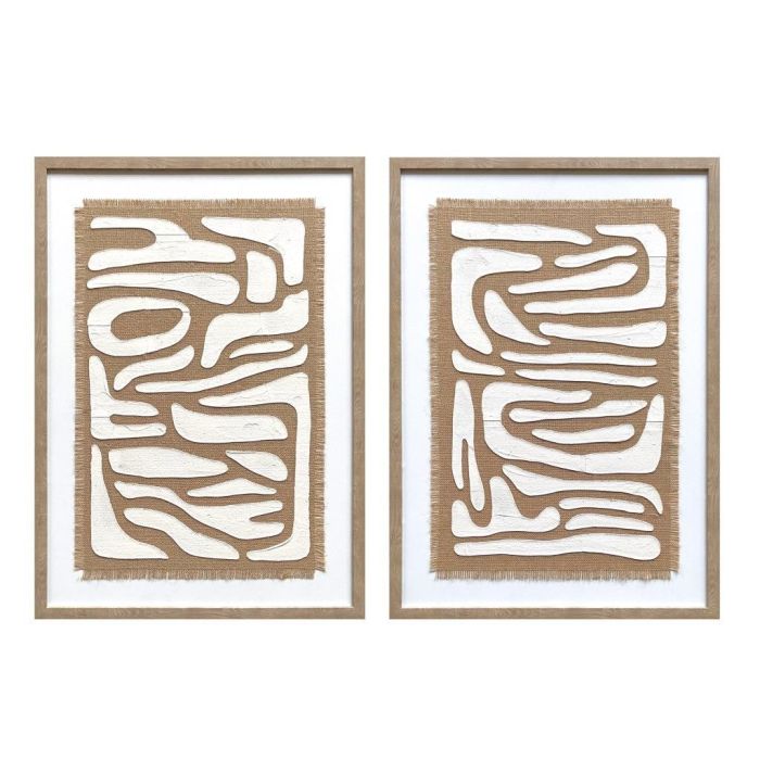 DKD Home Decor Cuadro Abstracto Lienzo Lino Blanco Beige 52.7 x 2.5 x 72.5 cm (2 Unidades)
