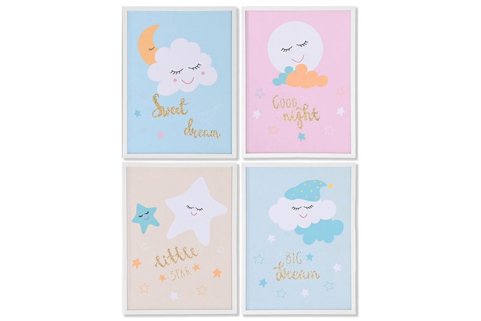 DKD Home Decor Cuadro Lienzo PS Azul Rosa Verde Beige Stars 1.8 x 40 x 30 cm (12 Unidades)