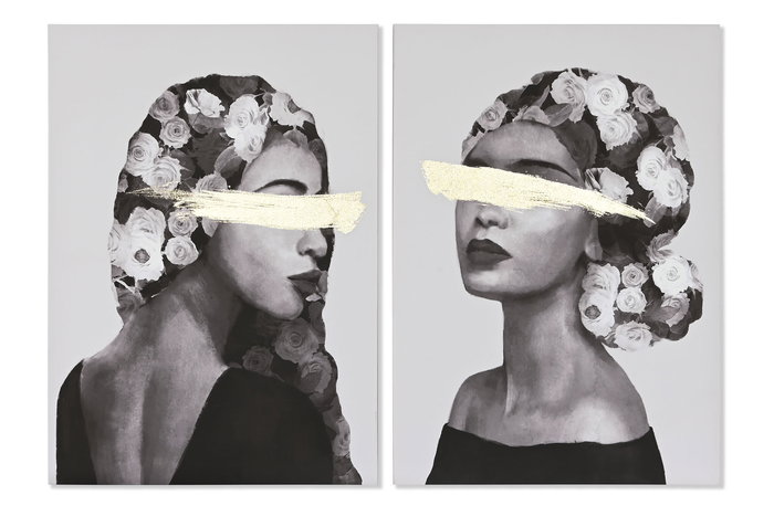 DKD Home Decor Cuadro Moderno Negro Dorado Lienzo Pino 70 x 100 x 3.7 cm (2 Unidades)