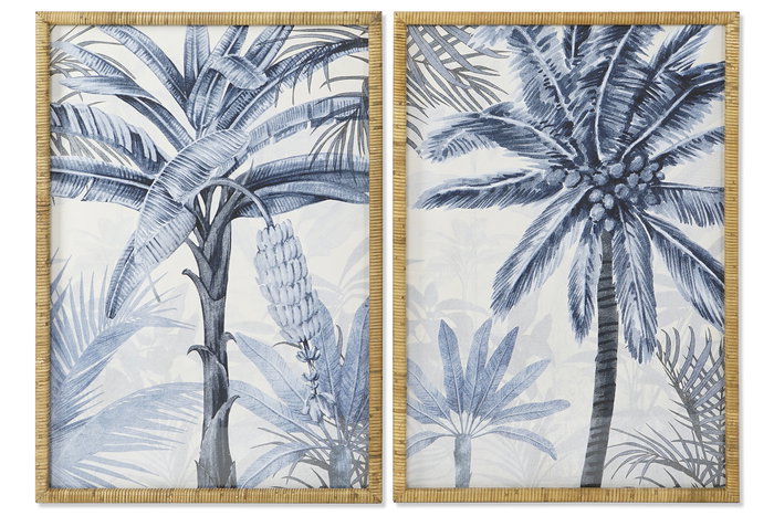 DKD Home Decor Cuadro Mediterraneo Azul Blanco 2 Unidades 3 x 100 x 70 cm Cristal Abeto Palmera