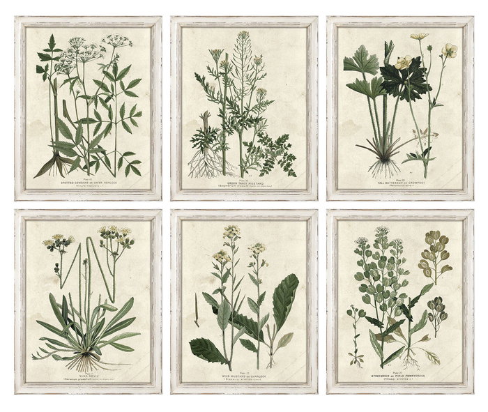 Cuadro Home ESPRIT Shabby Chic Plantas botánicas 40 x 1,5 x 50 cm (6 Unidades)