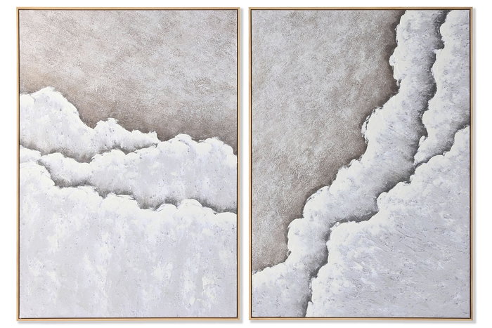 DKD Home Decor Cuadro de Lienzo Abstracto con Motivo Playa en Blanco y Beige, Marco de Madera, 143x102.6 cm, Pack de 2 Unidades