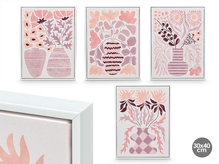 CUADRO LIENZO MARCO BLANCO JARRONES ROSA SURTIDOS