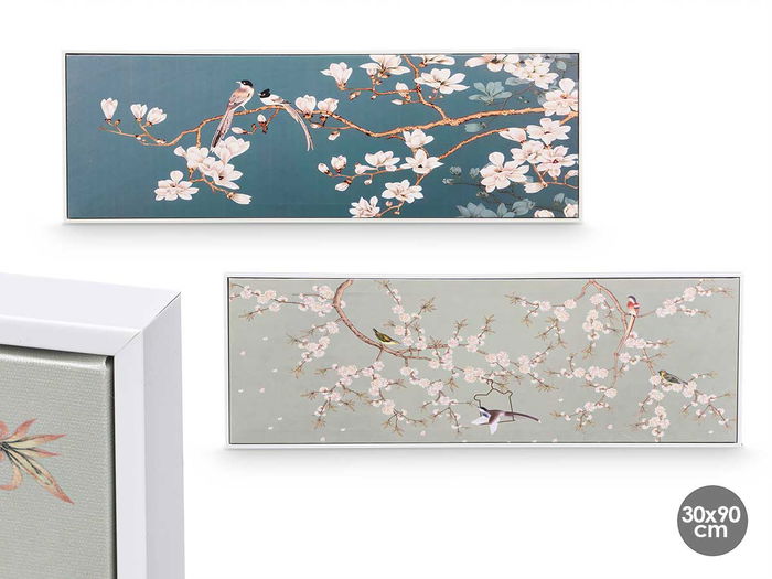 Giftdecor Cuadro Lienzo Marco Blanco Rama Almendro Surtidos 90x30x3 cm (Set de 2)