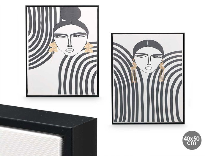 CUADRO LIENZO MARCO NEGRO MUJER RAYA SURTIDOS