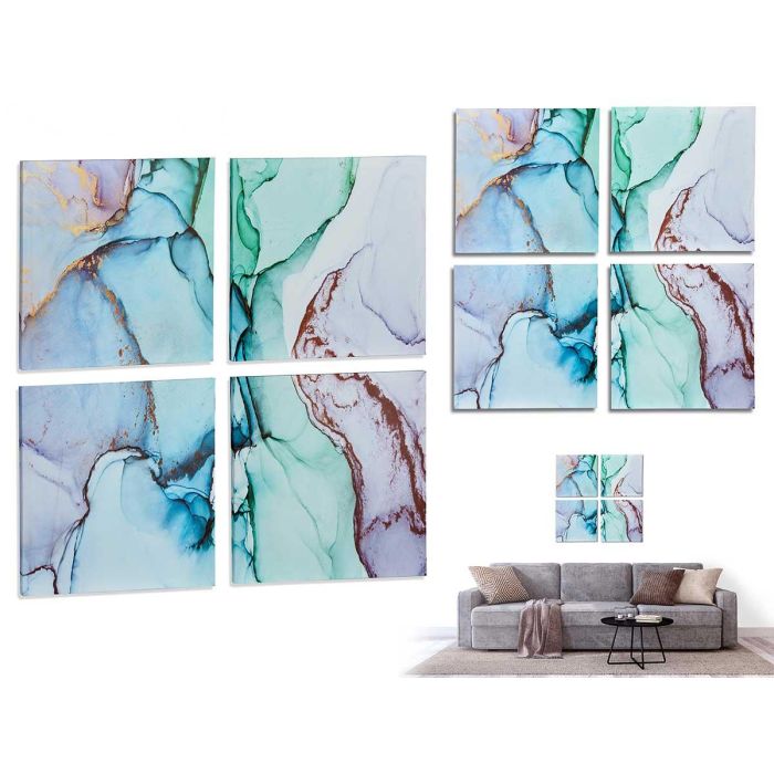 SET 4 LIENZO MARMOL AZUL 35X35CM