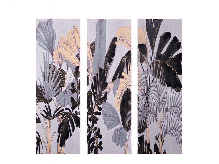Giftdecor Cuadro Palmera Negra Oleo Lienzo Surtidos 40 cm x 120 cm x 3 cm (Set de 3)