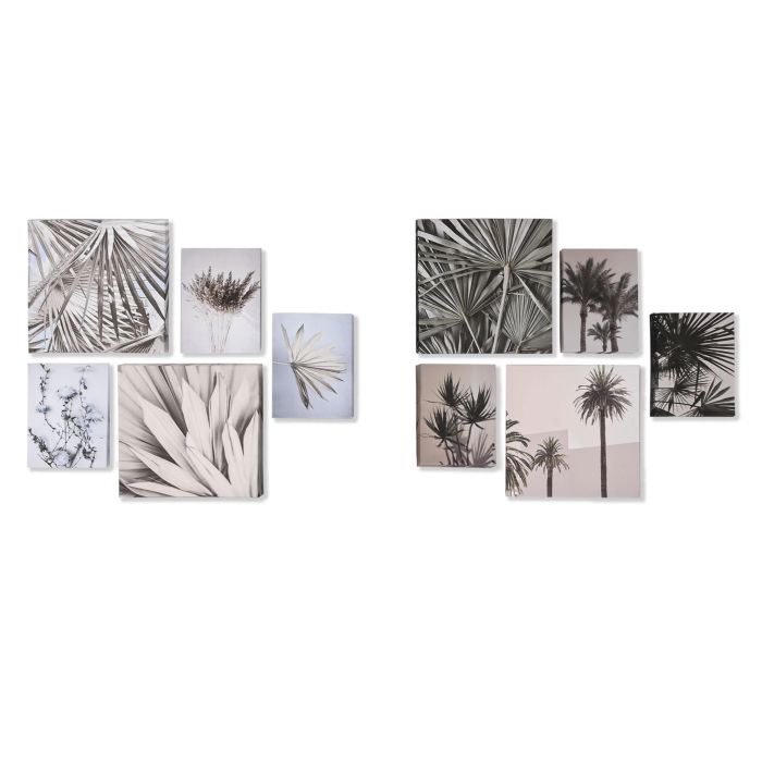 DKD Home Decor Set de 5 Piezas Cuadro Decorativo Hojas Beige Verde Lienzo MDF 25 x 25 x 2.5 cm