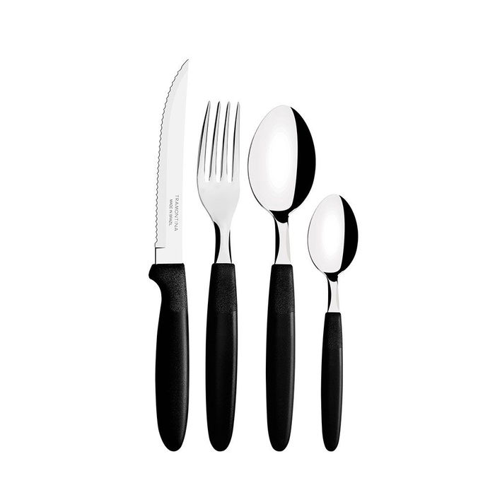 Cubertería de 25 piezas ipanema, en acero inoxidable, mangos de color negro de polipropileno. incluye: organizador de plástico. 6 cuchillos, 6 tenedores, 6 cucharas y 6 cucharas pequeñas