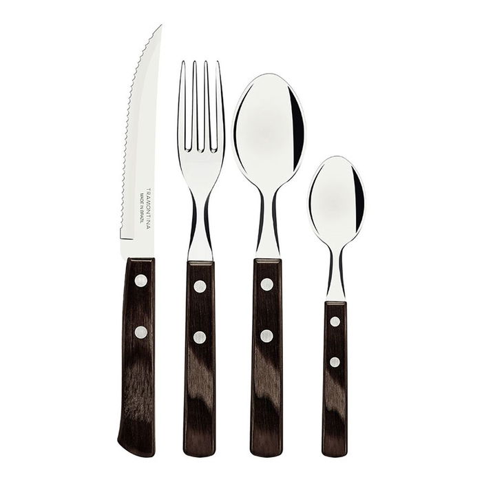 Tramontina Cubertería 24 Piezas Polywood Castaño Acero Inoxidable Mango Madera Tratada