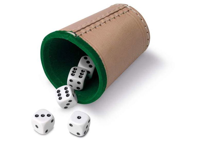 Cayro Cubilete de Cuero Forrado con Dados Puntos 8x10x8